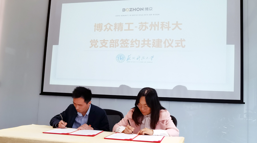5月8日,苏州科技大学校长顾菊平、学科办主任孙国华、电子与信息工程学院党委书记章鸣、电子与信息工程学院院长胡伏原等领导莅临博众精工参观交流,并举行校企党支部共建签约仪式。博众精工于军、何伟等代表公司出席活动。