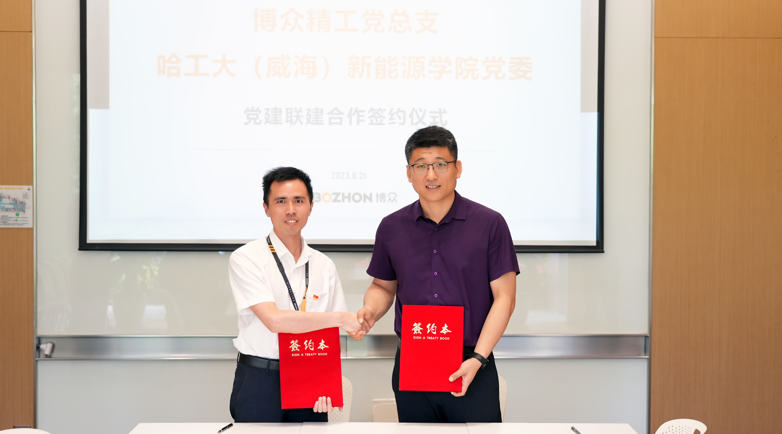 6月21日,在博众精工总部,博众精工党总支与哈尔滨工业大学(威海)新能源学院党委共同举行了联合党建启动仪式,并签署了共建协议。新能源学院副书记苏乃乾、党支部书记王富强,博众精工党总支书记何伟、总裁特助兼行政管理中心总监于军、哈工大校友王殿军等领导出席此次活动。