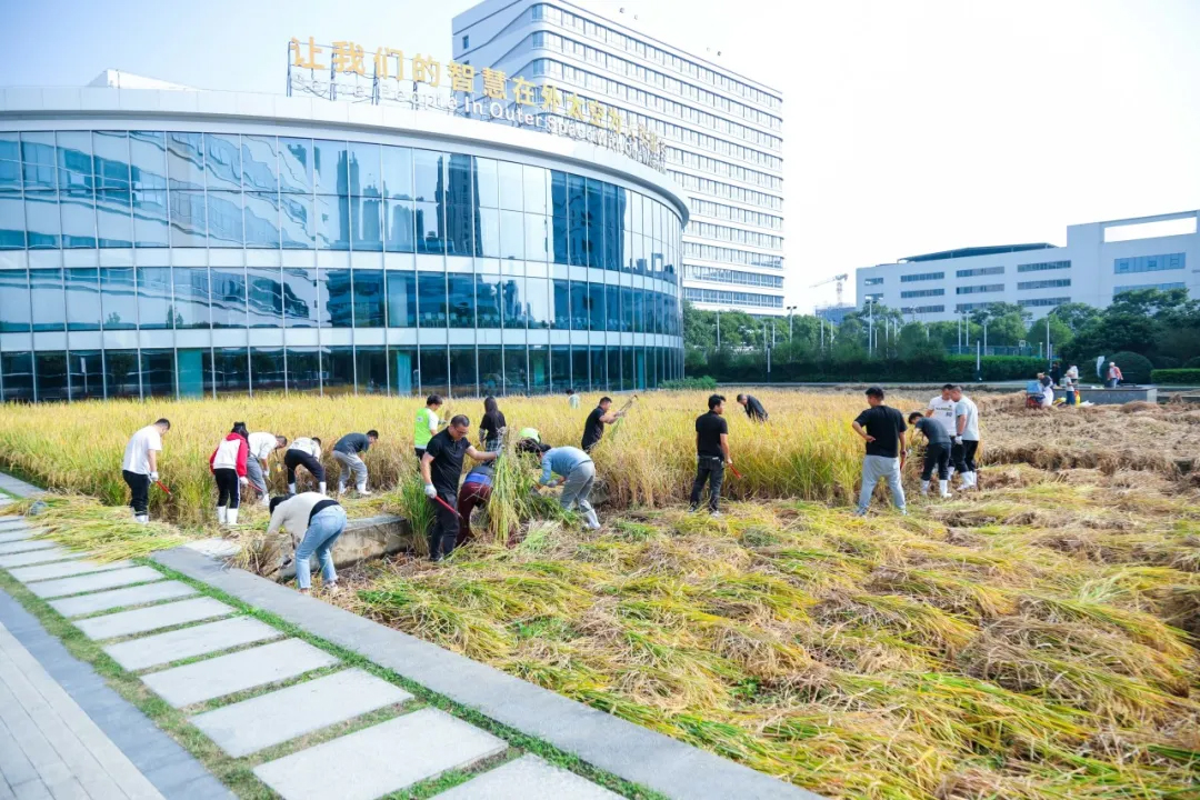 此外,收割期间,上海世外吴江云龙实验学校、河南机电职业学院的学生们也前来体验收割,享受丰收的乐趣。