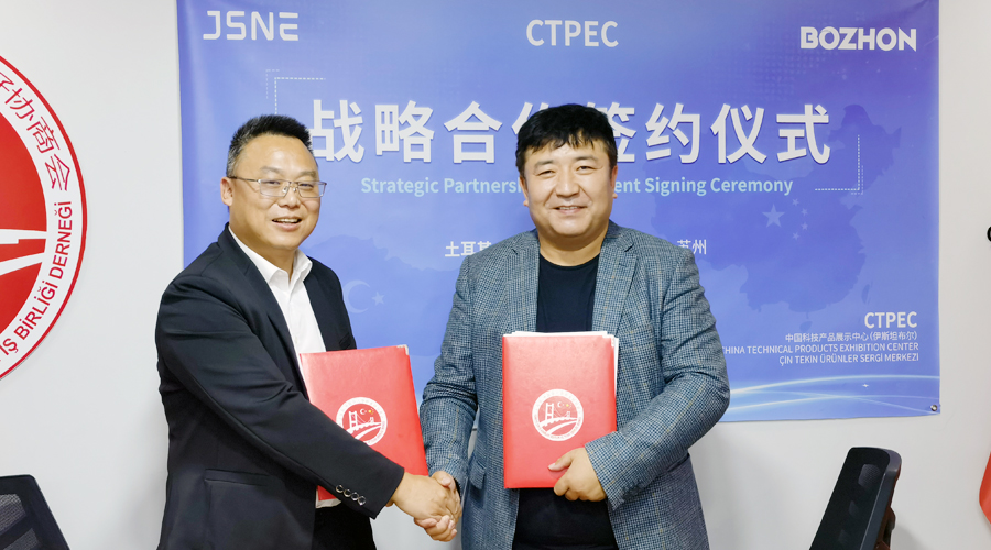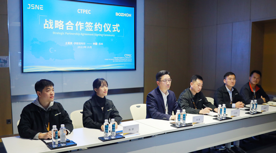 博众精工副总裁蒋健先生发表了热情洋溢的致辞,他表示:非常高兴和荣幸地见证此次与J.S的战略合作,也非常感谢中国科技产品展示中心对促成双方合作所发挥的积极和全面的作用。博众精工作为一家在工业自动化、智能制造装备和数字化工厂研发制造领域耕耘了二十一年的专业品牌,秉承中国在“一带一路”沿线国家共同致力于打造“人类命运共同体”的理念,非常愿意为土耳其新能源事业贡献自己的专业力量。