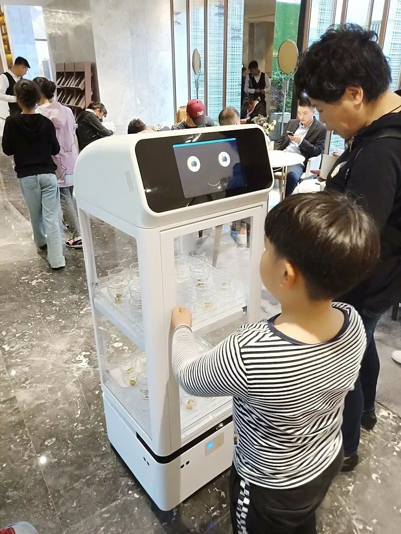 而售货机器人能勤勤恳恳地在大堂内移动,方便客户随时随地拿到可口的饮料,痛快畅饮。