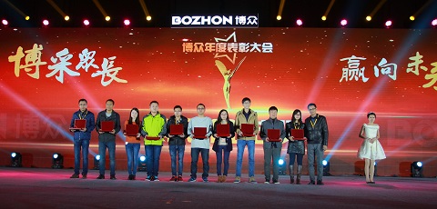 本次年会的第一个环节是“评优颁奖”,共七个奖项:分别是十年贡献奖、博众风范奖、技术创新奖、专业服务奖、持续改善奖、优秀质量奖和优秀合作院校奖。博众董事长吕绍林先生、总经理张志立先生及其他高管分别上台为获奖者或获奖团队代表颁奖,并合影留念。现场观众通过观看视频,了解了各获奖项目的具体内容,深深被他们勇于负责,富于创新,专注严谨和客户至上的精神所感动。