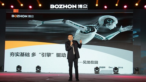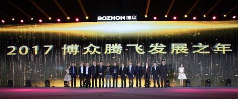 随后,博众董事长吕绍林先生上台演讲。吕总首先感恩时代和国家给予我们的安定环境和发展机遇,感谢社会各方,至上客户和所有博众人给予博众发展的付出和支持;然后,回顾了博众2016年所取得的重大成就,激起了全场博众人的自豪感和荣誉感;最后吕总再次宣导了“BOZHON”LOGO所宣传的的意义,重点讲述了智慧眼”O“代表的向外求,博众人要去放眼看世界,向内求,博众人要一直保持不断自我反省,自我超越的基因。